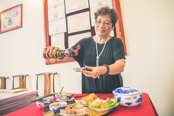 Nghệ nhân Ánh Tuyết cho hay, trong hơn 50 năm đứng bếp bà vẫn giữ thói quen sử dụng nước tương Nam Dương (tàu vị yểu Con Mèo Đen) khi nấu nướng bởi đây là loại đã được các thế hệ gia đình bà bảo chứng theo thời gian.